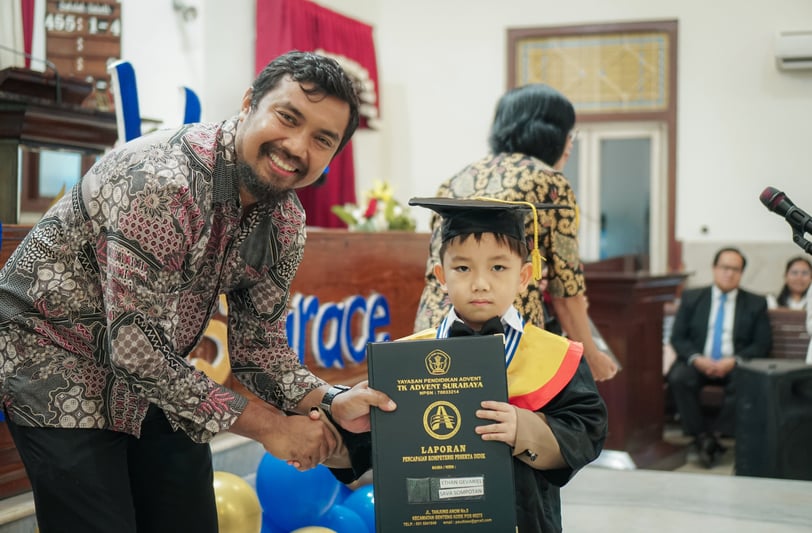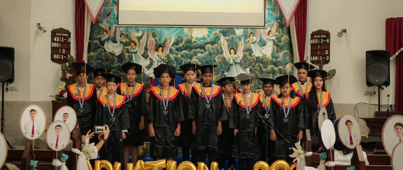 [taaschool.id] - Minggu 18 Mei 2025 telah diadakan penamatan untuk 6 siswa Taman Kanak Kanak (TK) dan 13 Sekolah Dasar (SD) yang hadir dan ditamatkan. Acara berlangsung di GMAHK The Angels Singing Surabaya Jl. Tanjung Anom 3-5 Surabaya pada Pukul 10.00 WIB. Ketua Dewan Sekolah P. Sianturi dan Kepala Sekolah F. Pietersz, MA.Ed melepas anak-anak yang ditamatkan ini dengan penuh sukacita.